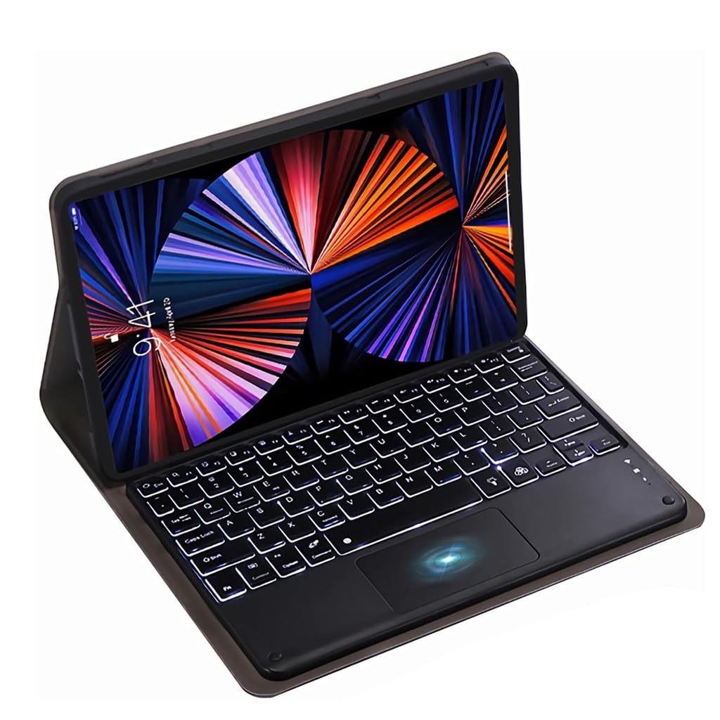 MULTI-TOUCH TRACKPAD WITH 7 COLOR BACKLIT AND RECHARGEABLE KEYBOARD: The keyboard features a multi-touch trackpad for easy navigation and mouse-like control, ideal for editing, browsing, and presentations. It offers 7 color backlit keys with 3 brightness levels. The 480mAh battery lasts up to 30 hours of use and 100 hours on standby, recharging in 2-3 hours via USB-C. An auto wake/sleep function helps conserve battery life.