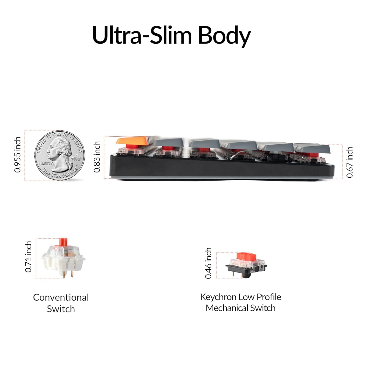 Keychron K3 Version 2, 84 Keys Ultra-Slim Wireless Bluetooth/USB Wired Mechanical Keyboard with White LED Backlit, Low-Profile Gateron Mechanical Red Switch Compatible with Mac Windows