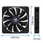 Kingwin 140 x 140 x 25 mm long life bearing case fan with special high profile fan blades for maximum air flow