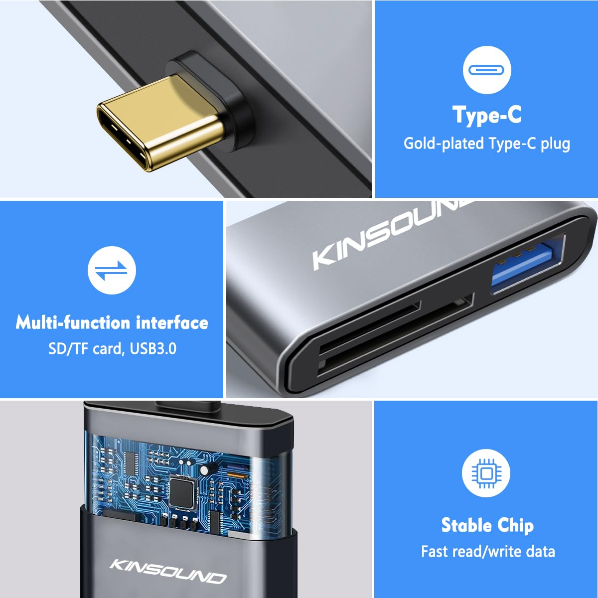 3 in-1 Multi-Interface: The memory card reader has various interfaces,usb/usb c(type c)/sd card slot/micro sd card slot for iPhone 15 & Android Phone ,Easily transfer the file you need between different devices.