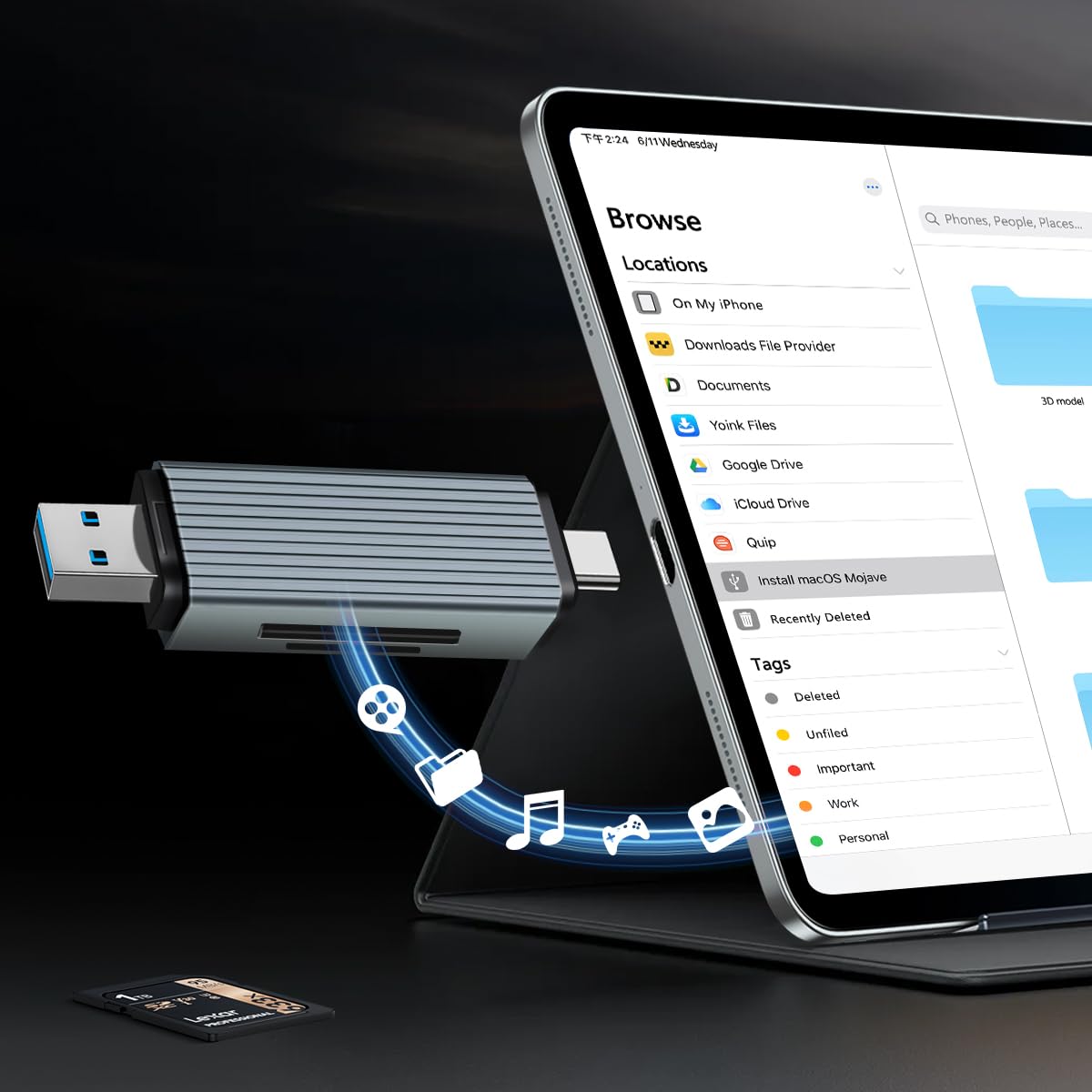 Real-Time Sharing and Data Management: High-speed two-way transmission allows you to save a lot of waiting time. micro sd card reader provides intelligent file viewing and management functions, allowing you to easily manage data between iPhone /ipad/ Android /computer and other devices.