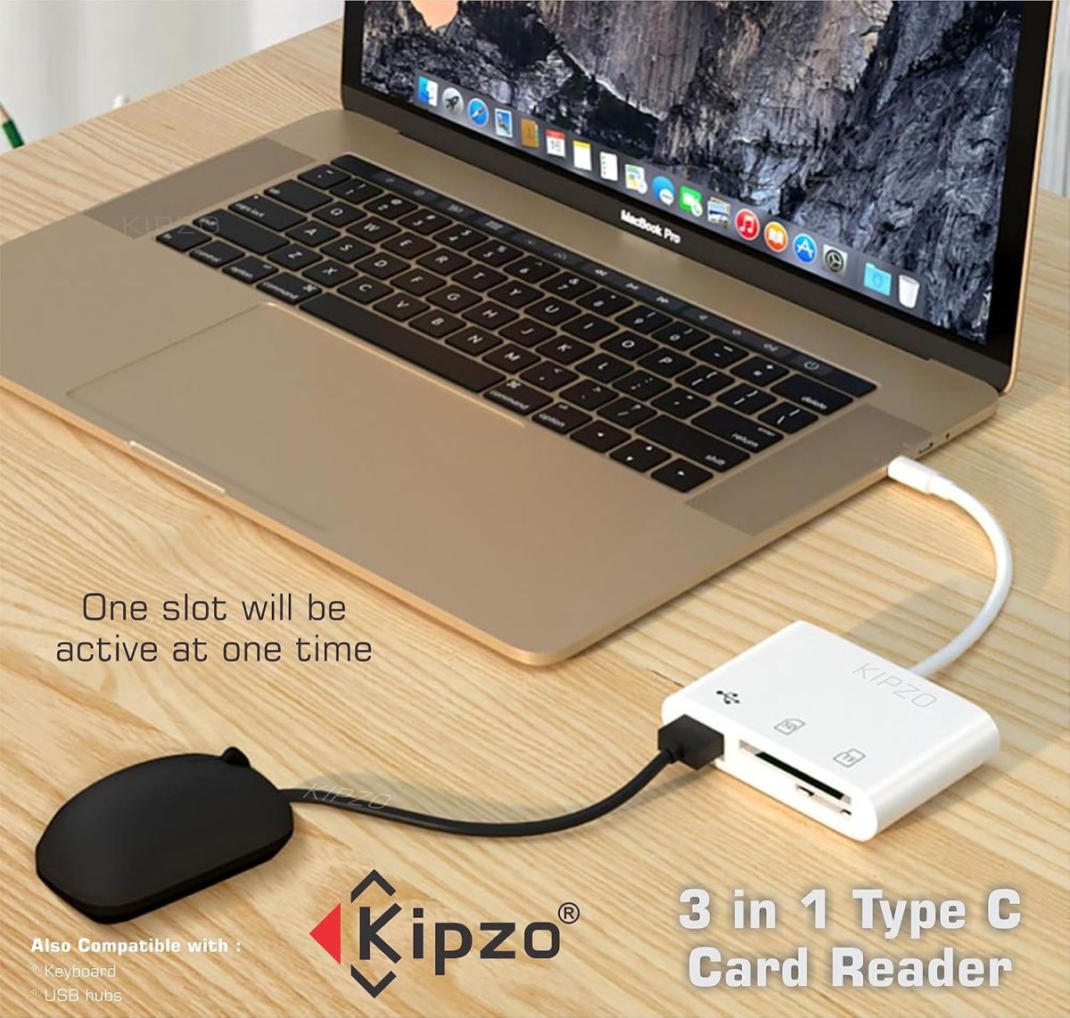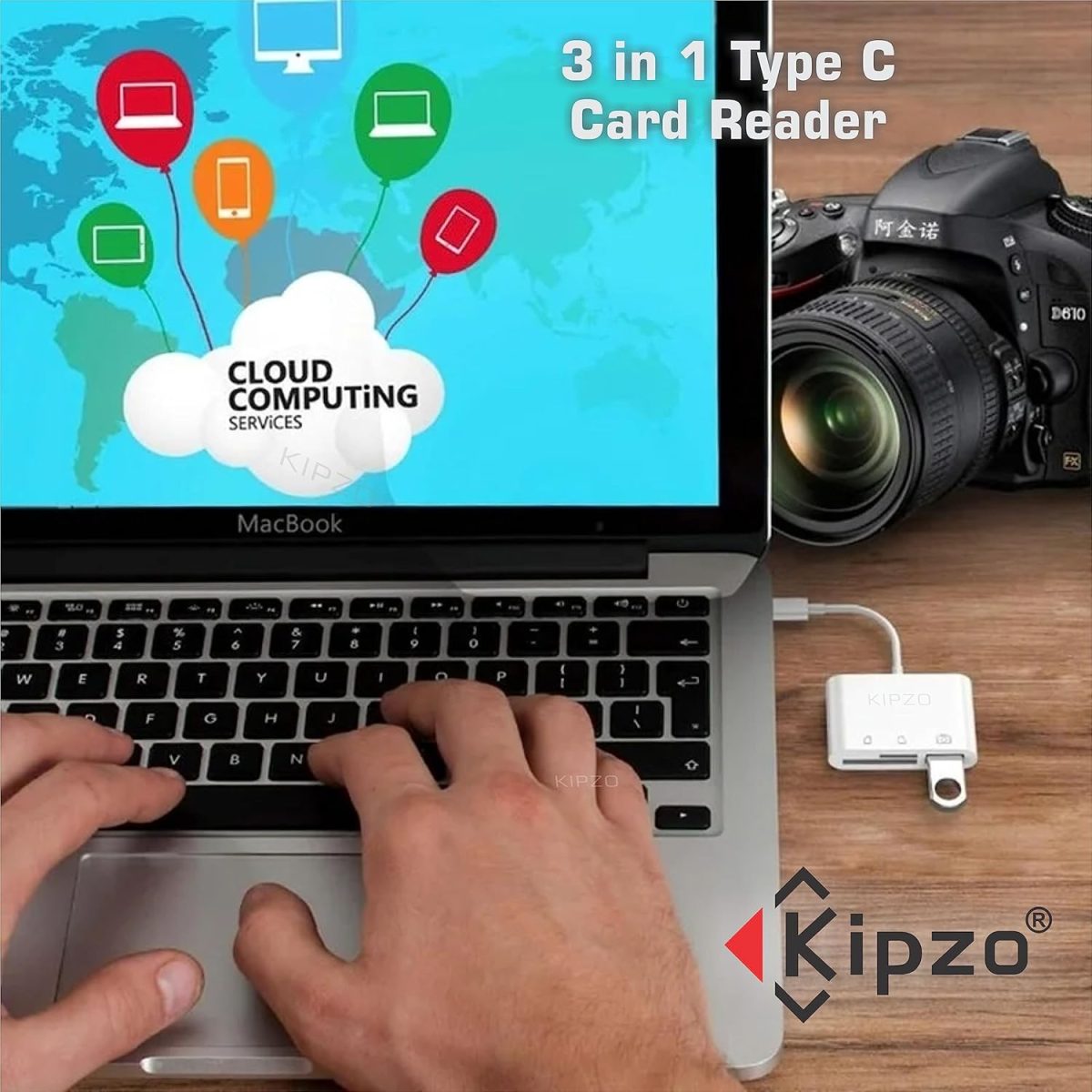 KIPZO® White SD Card Reader Type C 3 in 1 USB C to TF Card Reader OTG Compatible with USB C Devices Android Laptop PC