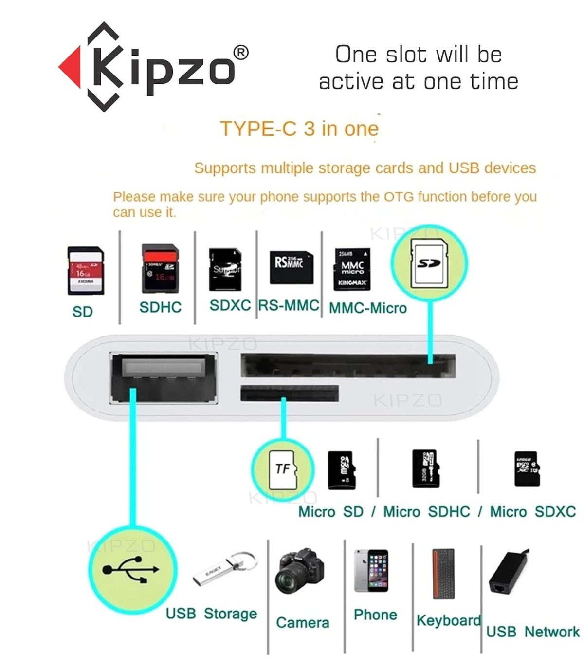 Be the first to review “KIPZO® White SD Card Reader Type C 3 in 1 USB C to TF Card Reader OTG Compatible with USB C Devices Android Laptop PC”