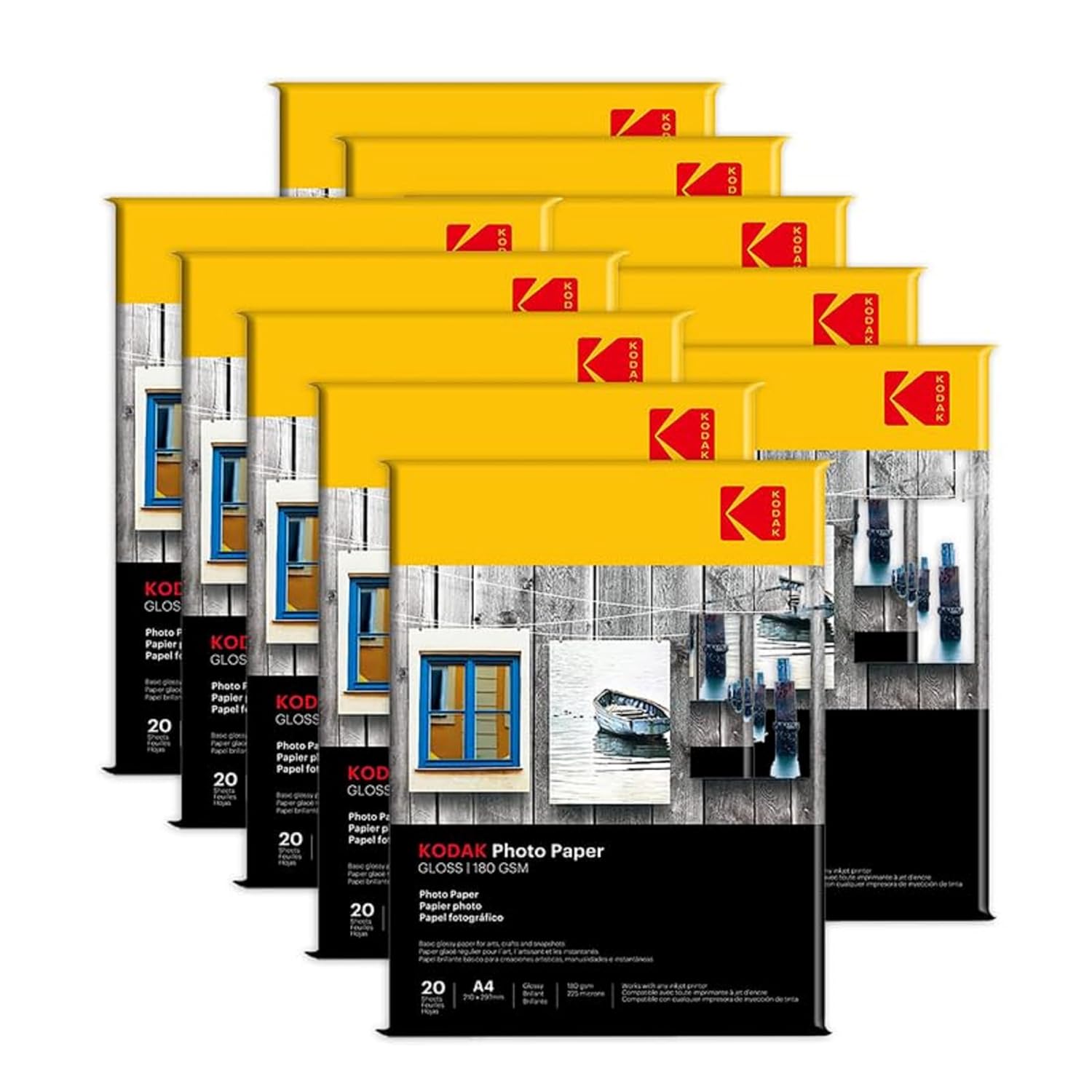 We are the exclusive distributors of Kodak Papers PAN India. Glossy white 180 GSM A4 Photo Paper is CC(Cast Coated) and water resistant. Brilliant and full color output with perfect color saturation. Quantity : 200 sheets