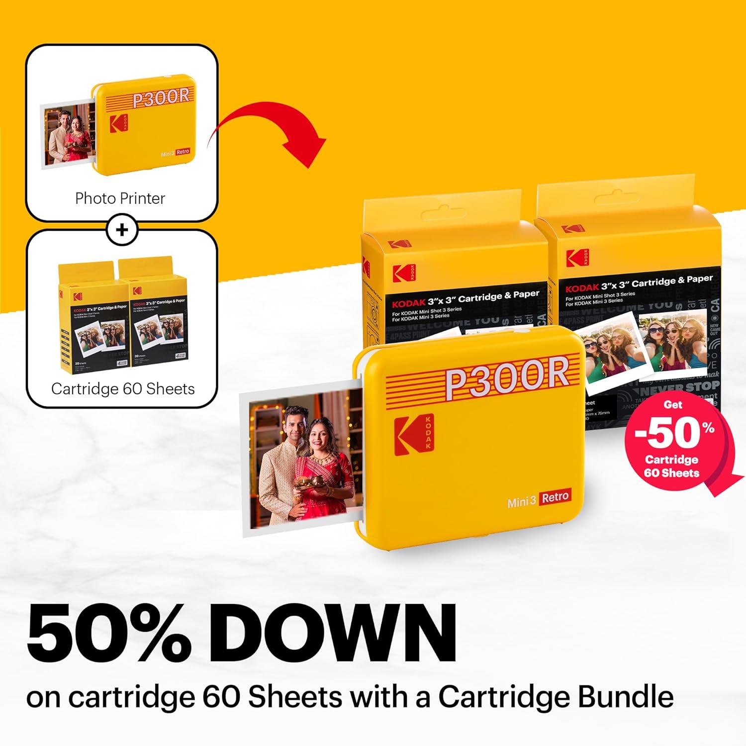 Low Photo Cost: Why pay more to print? Printing has never been easier with our Kodak Mini 3 Retro photo printer. Photos are even half the cost if purchased in a bundle!
