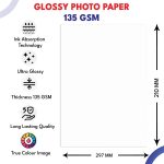 The paper comes with a high-gloss finish, ensuring every printed image looks sharp, vibrant, and professional.Perfect for photos, posters, brochures, and other high-quality print materials.Provides the right balance of rigidity and flexibility for high-quality prints without warping or creasing.This paper is smudge-proof, ensuring that your prints do not get damaged during or after printing.It’s engineered for quick drying, which makes handling easier, especially when producing high-volume prints.Suitable for both personal and professional projects.