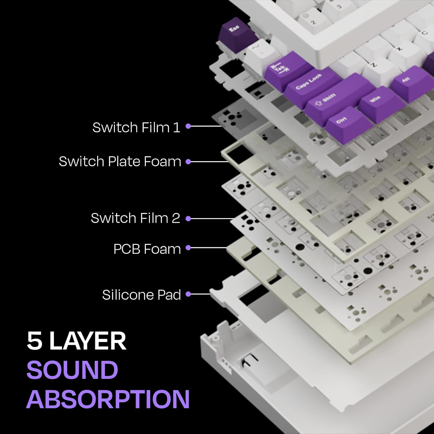 The gasket-mounted design provides a softer, quieter typing experience and eliminates unwanted vibrations, enhancing overall comfort and sound quality.