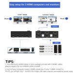 Support physical button and external switch button. Only when your computer supports dual display or multi display, you can use this product to achieve two computers to share two monitors, extended mode or copy mode.
