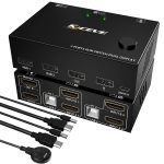 This dual monitor switch can support resolution up to 4K@30Hz (3840×2160) YUV 4:4:4, downward compatible with lower resolutions. Support wired /wireless/mechanical keyboard and mouse. Powered by USB cables, no need external power adapter, plug and paly, it make you work and life easier and simpler.