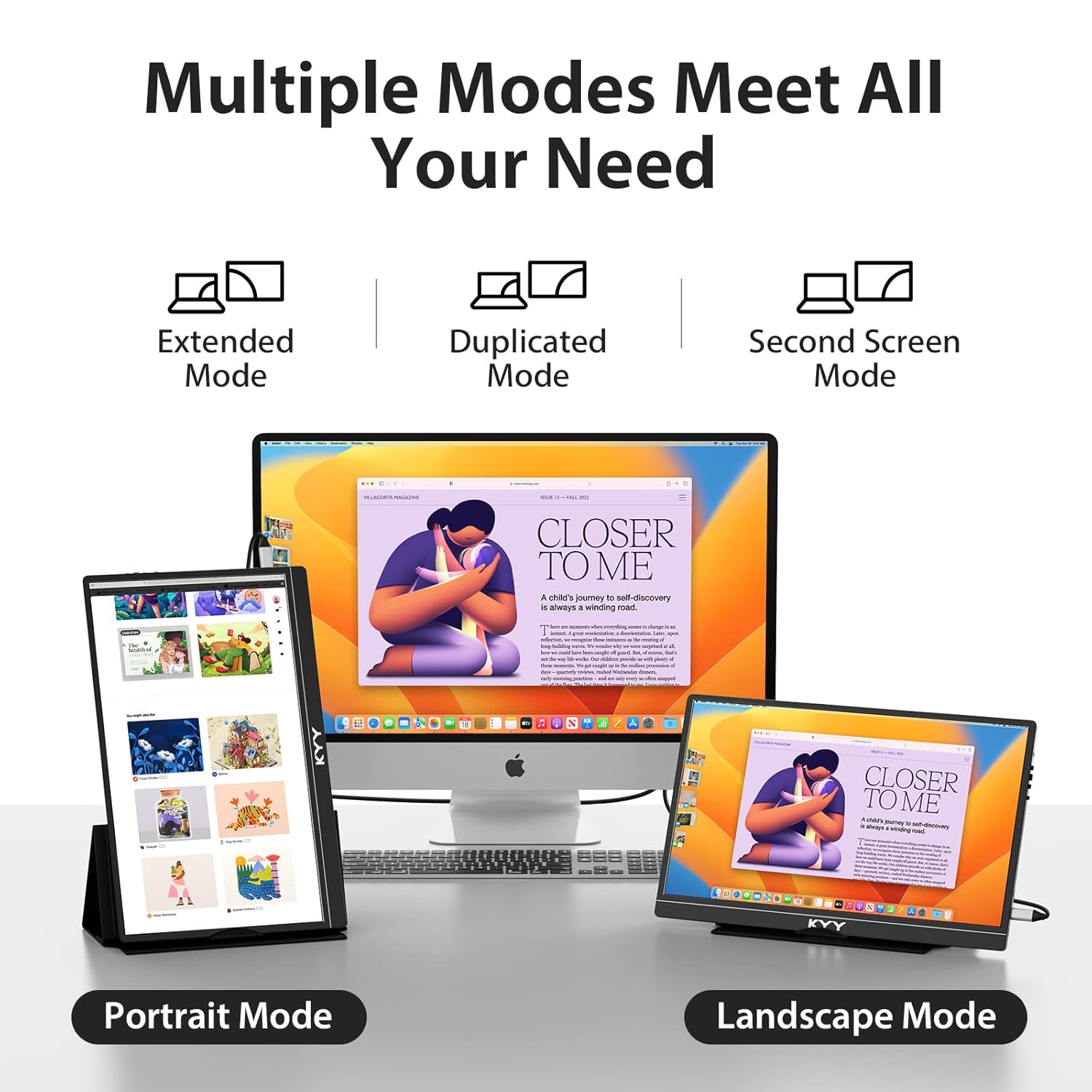With only 1.56 lbs and 0.3 inches slim profile, the KYY portable display is easy to put into your briefcases and become the ideal travel companion for laptops to maximize work efficiency.
