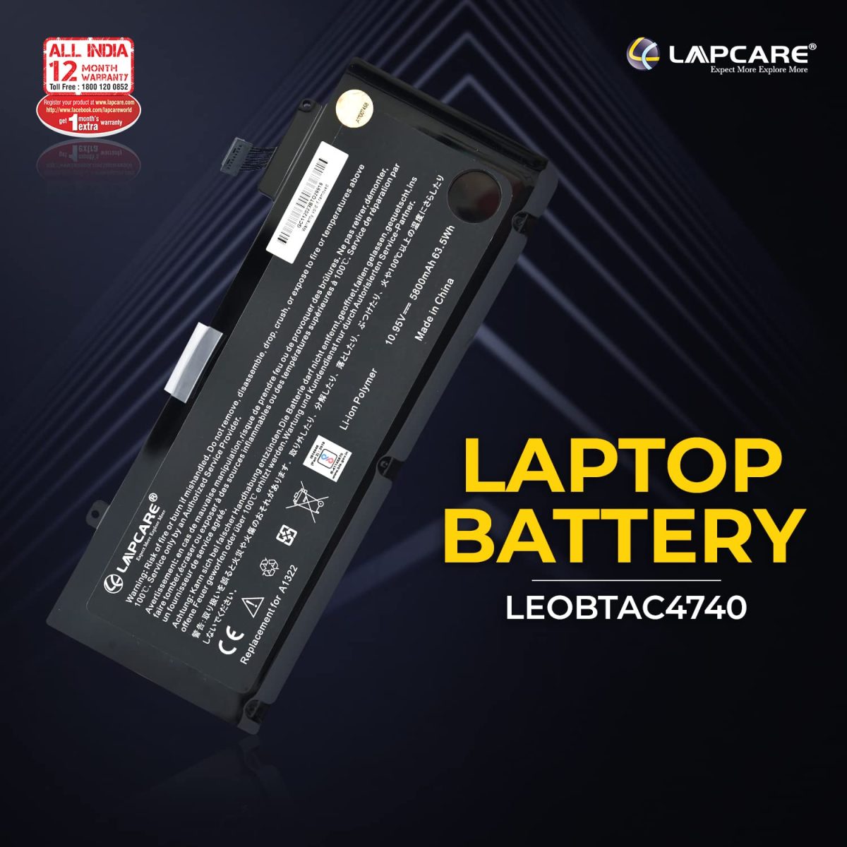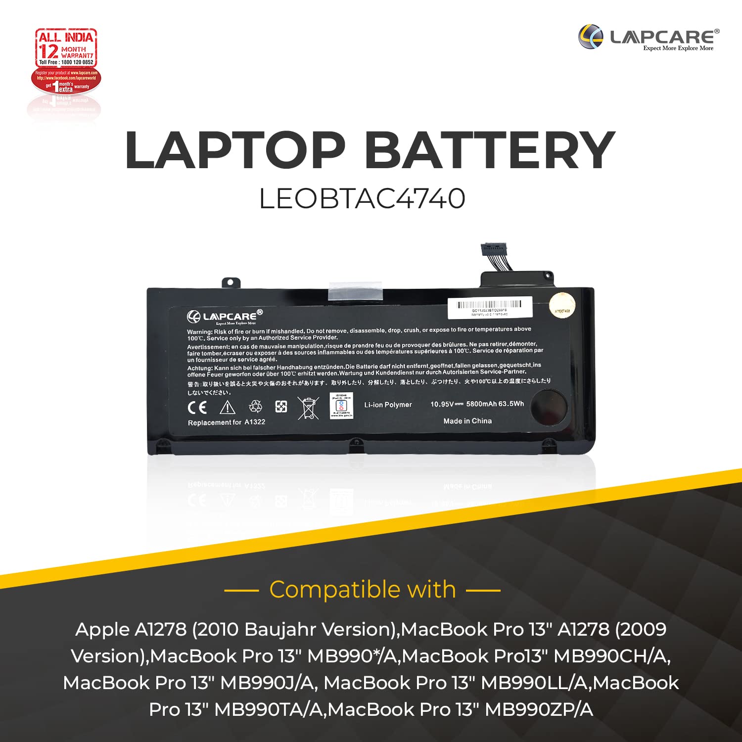 Be the first to review “Lapcare A1322 A1278 Laptop Battery for Apple MacBook Pro 13 inch (Mid 2012 2010 2009 Early Late 2011) 661-5557 661-5229 MB990LL/A MB991LL/A MD313LL/A MC374LL/A MD101LL/A MD102LL/A MC700LL/A”
