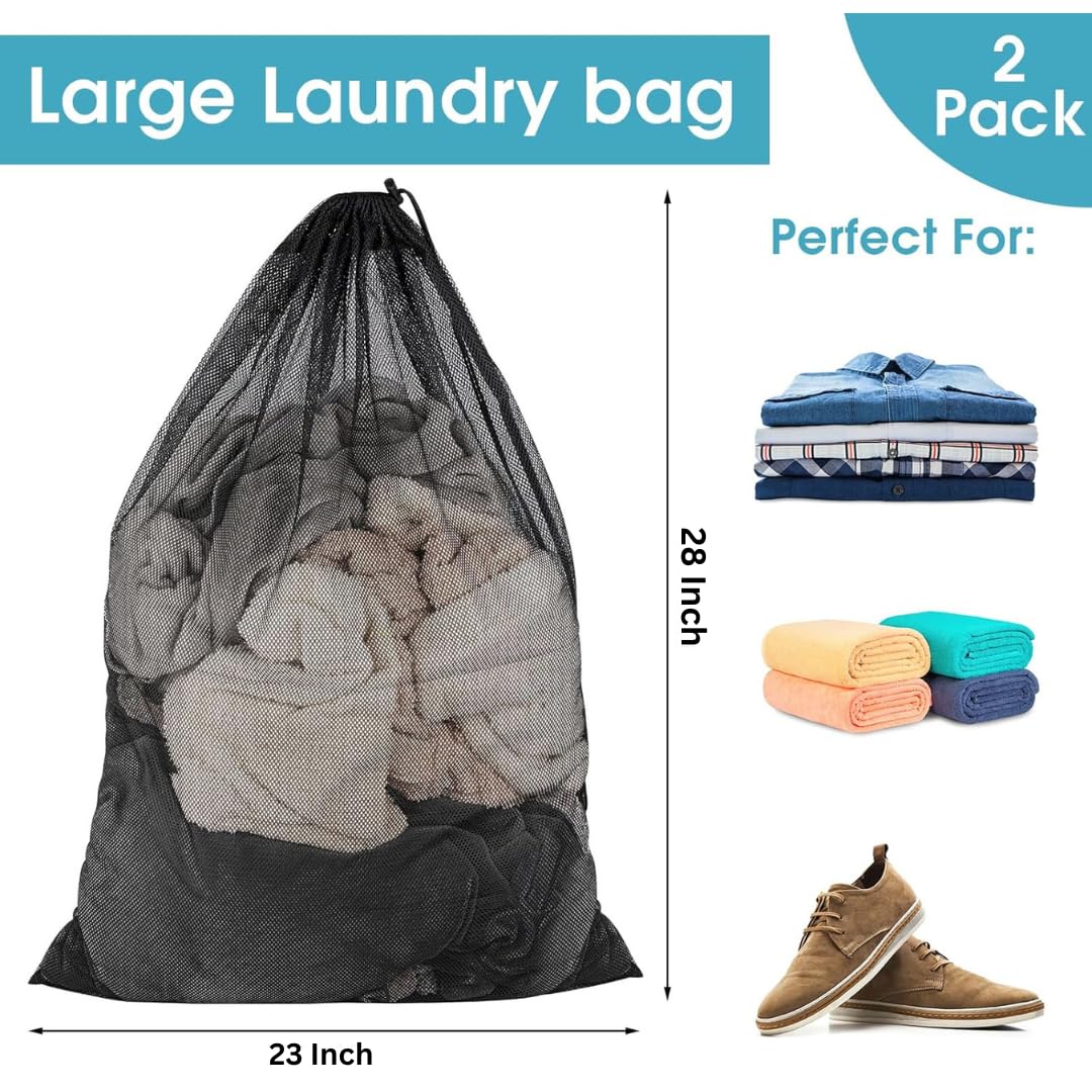 Large Mesh Laundry Bags: The laundry bag measures 23 x 28 inches, providing a spacious interior that can handle large amounts of clothing, such as blankets, sheets, ropes, tablecloths, bath towels, down jackets, etc., 2 Piece enough to meet your normal use