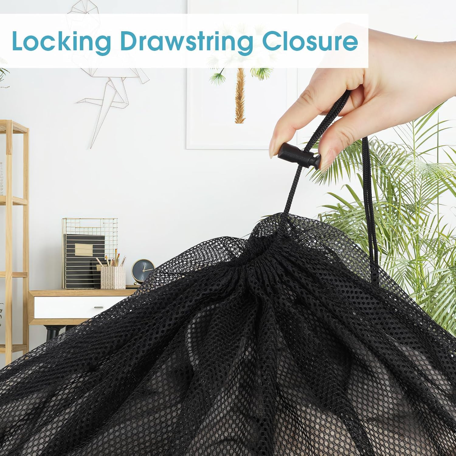 Drawstring Locking Closure: This mesh laundry bag has a plastic lock, easy to use and sleek appearance, the unique design really brings convenience to storage and prevents items from falling