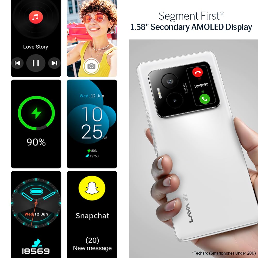 Lava Blaze Duo 5G (Arctic White, 8GB RAM, 128GB Storage) |Segment’s First Secondary Screen|120 Hz Curved Amoled Display | 64 MP Camera (Sony Sensor) | MediaTek Dimensity 7025 Processor