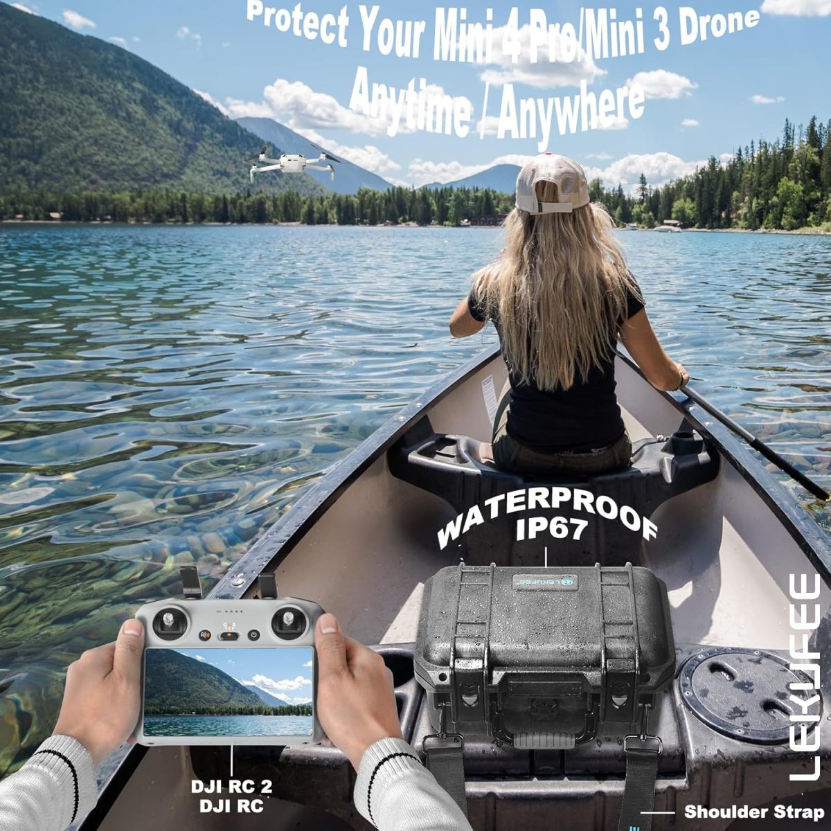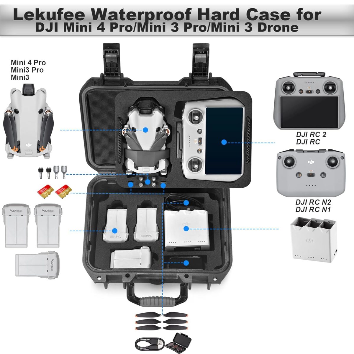 Lekufee Travel Waterproof Hard Case Compatible with DJI Mini 4 Pro Drone/DJI Mini 3 Pro/Mini 3 Drone/Fly More Combo/DJI RC 2/RC-N2 Remote and DJI Mini 4 Drone Accessories (Carrying Case Only)