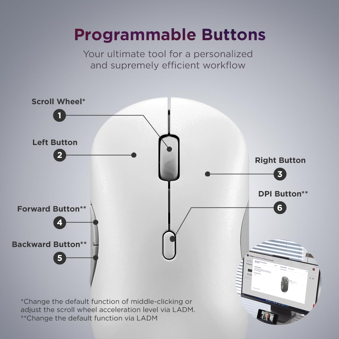 [Silent & efficient. Always] : Crafted for productivity, efficiency, and focus, this mouse features programmable buttons for customized control and silent clicks for an uninterrupted workflow throughout your day.
