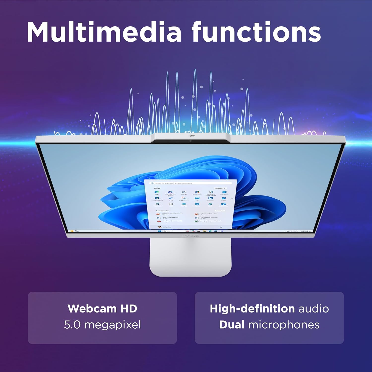 Lenovo A100 AIO Intel® Core™ i3-N305 24″ FHD IPS (8GB RAM/512GB SSD/Windows11/Office 24/2Wx2 Speakers/Wireless EOS Keyboard & Mouse, Cloud Grey), F0J6005LIN All-in-One Desktop