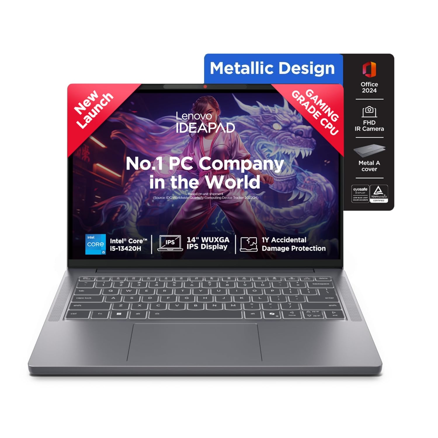 Lenovo IdeaPad Slim 3 13th Gen Intel Core i5-13420H 14 inch (36.8cm) WUXGA IPS Laptop (16GB RAM/512GB SSD/Windows 11/Office Home 2024/Backlit Keyboard/1Yr ADP Free/Grey/1.4Kg), 83K00034IN