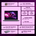 Lenovo IdeaPad Slim 3 AMD Ryzen 7 8840HS 15.3 inch (38.8cm) WUXGA IPS AI PC Laptop(24GB RAM/1TB SSD/Windows 11/Office Home 2024/Backlit Keyboard/1Yr ADP Free/Grey/1.6Kg), 83KA004TIN