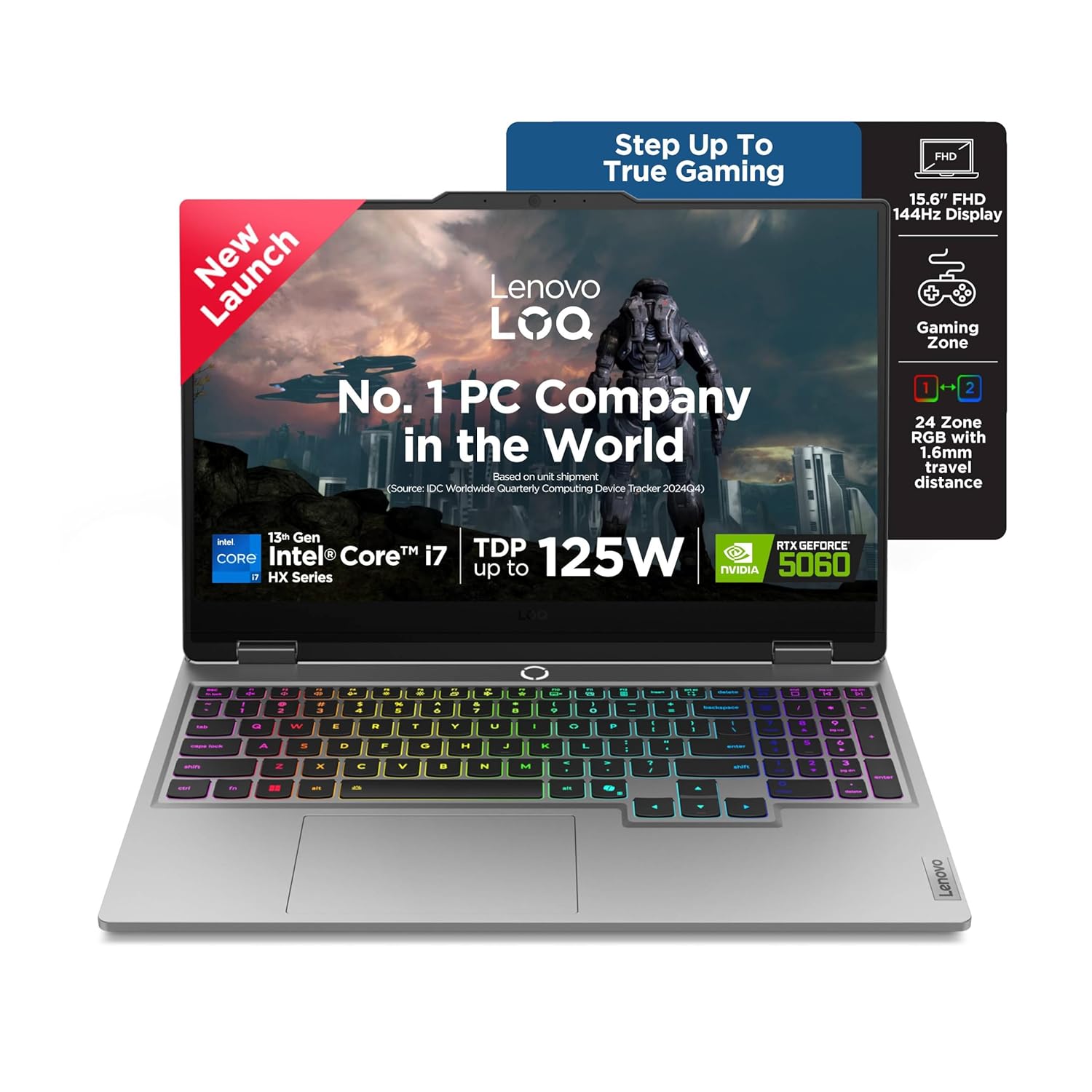 Lenovo LOQ, Intel Core i7 13th Gen 13700HX, NVIDIA RTX 5060 8GB, 16GB RAM, 1TB SSD, 15.6″(39.6cm), 144Hz, Windows 11, Office 2024, Grey, 2.4Kg, 83JE00U4IN, 572 AI Tops, 3 Mon. Game Pass Gaming Laptop
