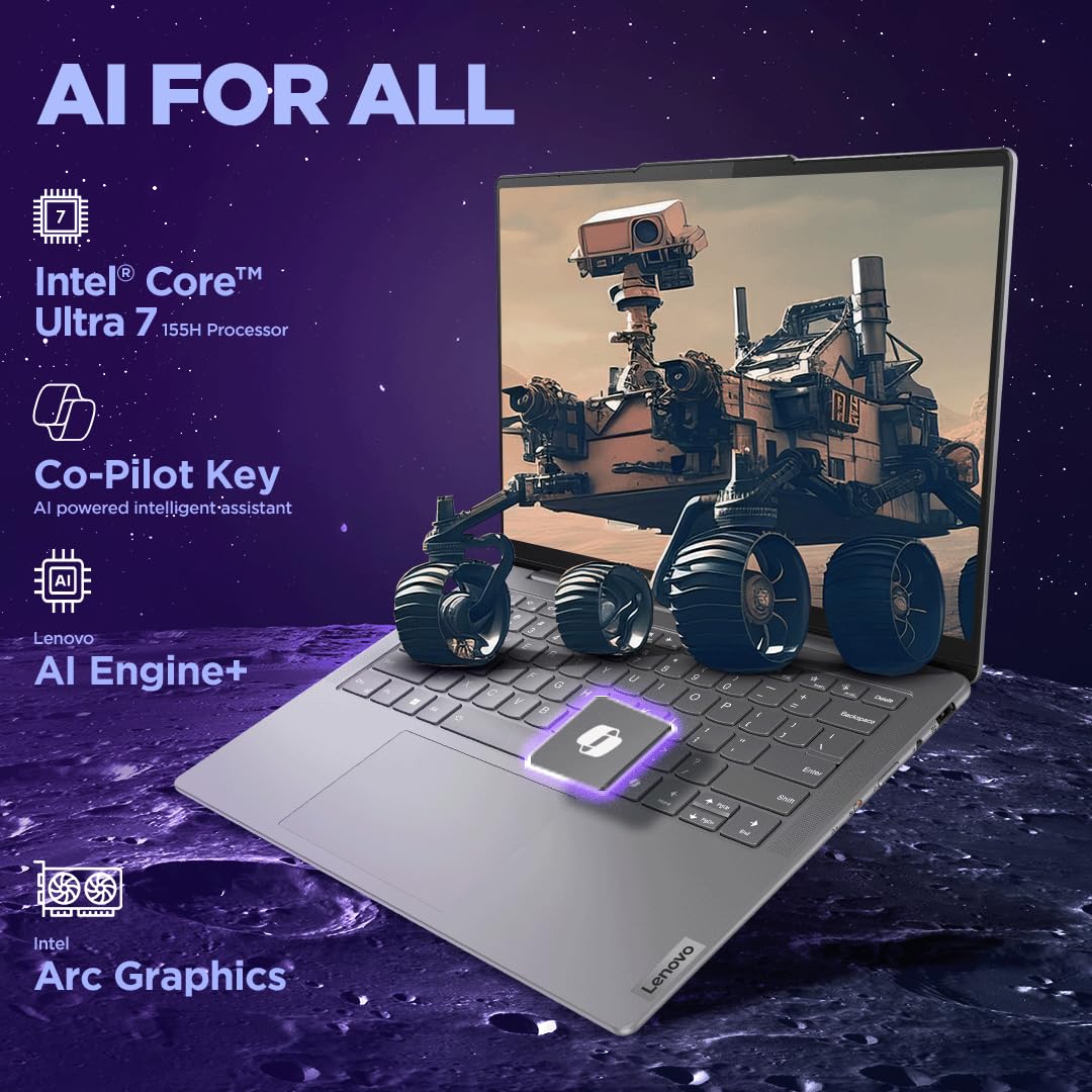 Lenovo Smartchoice Yoga Slim 7 Intel Core Ultra 7 155H Built-in AI 14″(35.5cm) WUXGA-OLED 400Nits Laptop (32GB RAM/1TB SSD/60Hz/100% DCI-P3/Win11/Office Home 2024/1Yr ADP Free/Grey/1.39Kg), 83CV008XIN
