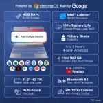Lenovo Chromebook 11″: Compact, Durable, and Built for Fun In today’s fast-paced world, having a reliable device that’s both portable and powerful is essential, especially for families who are always on the move. The Lenovo Chromebook 11″ perfectly combines these qualities with a design that is not only compact and durable but also engineered to meet the demands of modern-day family adventures. Whether you’re heading out for a road trip, a weekend getaway, or simply need a dependable device for daily use, the Lenovo Chromebook 11″ ensures that you stay connected, entertained, and productive throughout the day. ### Power and Performance That Lasts All Day When it comes to choosing a Chromebook, performance is a critical consideration, and the Lenovo Chromebook 11″ does not disappoint. Equipped with an Intel® Celeron® N4500 processor, this device provides the right balance of power and efficiency for both everyday tasks and light entertainment. Whether you’re browsing the web, writing emails, or working on documents, the Lenovo Chromebook 11″ ensures smooth performance with minimal lag. The Celeron® processor is built to handle a range of tasks with ease, making it an excellent choice for parents who need a reliable device for their day-to-day activities. One of the standout features of this Chromebook is its impressive battery life. With over 11 hours of battery life*, the Lenovo Chromebook 11″ is engineered to keep you powered throughout the day, making it perfect for those who need a device that can keep up with their busy schedules. Whether you’re working remotely, running errands, or on the go with your family, you won’t have to worry about constantly searching for an outlet. And, when it’s time to recharge, the rapid charging feature ensures you’re back in action in no time. In just an hour, the Chromebook can charge up to 80%, allowing you to quickly get back to work, play, or entertainment without missing a beat. Additionally, the device’s Intel® UHD graphics ensure that you can enjoy smooth video streaming, light gaming, and other multimedia activities with ease. Whether your children are watching their favorite shows or you’re relaxing with a movie, the visuals are crisp and clear, bringing your entertainment to life. ### Built Tough for Family Adventures The Lenovo Chromebook 11″ is designed with families in mind. With its compact 11.6″ anti-glare display, it is both easy to carry around and perfect for outdoor adventures. The Chromebook’s slim profile means that it can be easily slipped into a bag or backpack without taking up much space, making it highly portable for busy families who are always on the go. The device weighs just 1.21 kg, making it lightweight enough for children to carry or use on their own without straining themselves. Its manageable size makes it a great option for family trips, whether you’re taking a flight, driving cross-country, or simply hanging out at the park. The build quality of the Lenovo Chromebook 11″ is designed to withstand the rigors of daily life and the bumps and tumbles that are often inevitable when you have children around. The reinforced maca blue chassis is tough enough to withstand accidental drops and scrapes, ensuring that the Chromebook remains in good condition, even during hectic family outings. You won’t have to worry about your device getting damaged when your kids are handling it or when it’s stashed in your bag alongside other items. This rugged construction makes the Chromebook ideal for parents who need a dependable and durable device that can endure the demands of family life. ### Entertainment on the Go, Family-Approved Keeping your kids entertained during long car rides, flights, or waiting periods can sometimes be a challenge, but the Lenovo Chromebook 11″ makes it easy. Its 11.6″ anti-glare display ensures that your little ones can enjoy their favorite videos, shows, and movies with ease, even under bright sunlight or indoor lighting. The anti-glare technology reduces eye strain, making it more comfortable for prolonged viewing. Whether it’s a long road trip or a rainy afternoon at home, the Chromebook’s display is bright and vibrant enough to keep your children engaged, providing them with an enjoyable experience wherever you are. Along with the display, the dual stereo speakers with HD sound make listening to music, watching videos, and joining video calls an immersive experience. The sound quality is clear and crisp, which is perfect for video calls with loved ones or for streaming entertainment on the go. The audio is designed to fill the room, ensuring that everyone can enjoy the experience, whether they’re watching a family movie together or enjoying a solo session of music or a podcast. In addition to its multimedia capabilities, the Chromebook is also great for educational use. With access to Google Play Store and Chrome OS apps, kids can explore learning resources, play educational games, and even attend virtual classes, all on a single device. This makes the Lenovo Chromebook 11″ a versatile tool for both entertainment and learning, giving families the flexibility to balance fun and education effortlessly. ### Next-Gen Wi-Fi and Future-Proof Bluetooth® Connectivity In today’s digital age, staying connected is more important than ever. The Lenovo Chromebook 11″ comes equipped with Wi-Fi 6, which is the latest generation of Wi-Fi technology. Wi-Fi 6 offers faster speeds, better reliability, and greater efficiency compared to previous Wi-Fi standards. This means that whether you’re streaming movies, browsing the web, or working on important tasks, the Chromebook ensures that your connection is stable and fast. The improved performance of Wi-Fi 6 is particularly beneficial in crowded environments with many connected devices, such as busy households or public spaces. Additionally, the Chromebook features Bluetooth® 5.1, which ensures seamless and