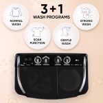 Wash Programs: 3+1 Wash Programs: Gentle – delicate materials such as wool, cashmere, silk, and embroidered clothes, blankets and other bedding items | Normal – everyday clothes made of cotton, linen, and durable synthetics – bed sheets, towels, t-shirts, socks, and underwear | Soak – effectively wash out heavy-duty, old dirt from your laundry | Strong – remove stubborn dirt and stains from fabrics like heavily-stained work wear or towels