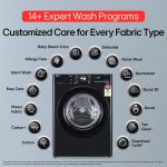 Wash Programs: 14+ No. of Programs – Cotton; Cotton+; Mixed Fabric; Easy Care; Silent Wash; Allergy Care; Baby Steam Care; Delicate; Hand/Wool; Sports Wear; Quick 30; Duvet; Tub Clean; Download Cycle: can download additional wash programs using LG ThinQ app | Display Type – Dial + Full Touch Buttons & LED Display; Water proof Panel