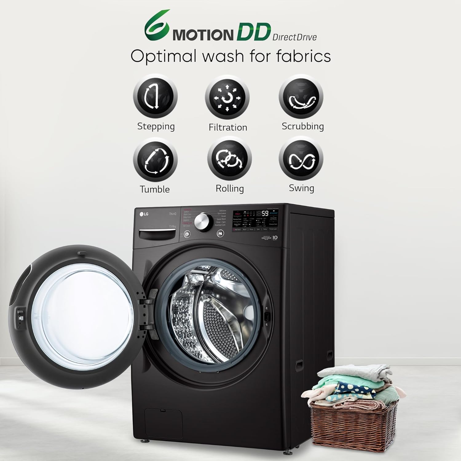 The 6 Motions Direct Drive delivers superior wash performance to each fabric with its unique motions