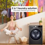 LG washer dryer maximizes space utilization by combining two essential laundry functions into a single unit.