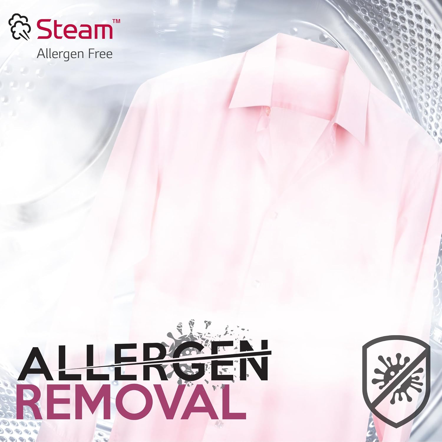 LG Steam technology in washer dryers prevents allergens, such as dust mites that can cause allergy or breathing-related problems.