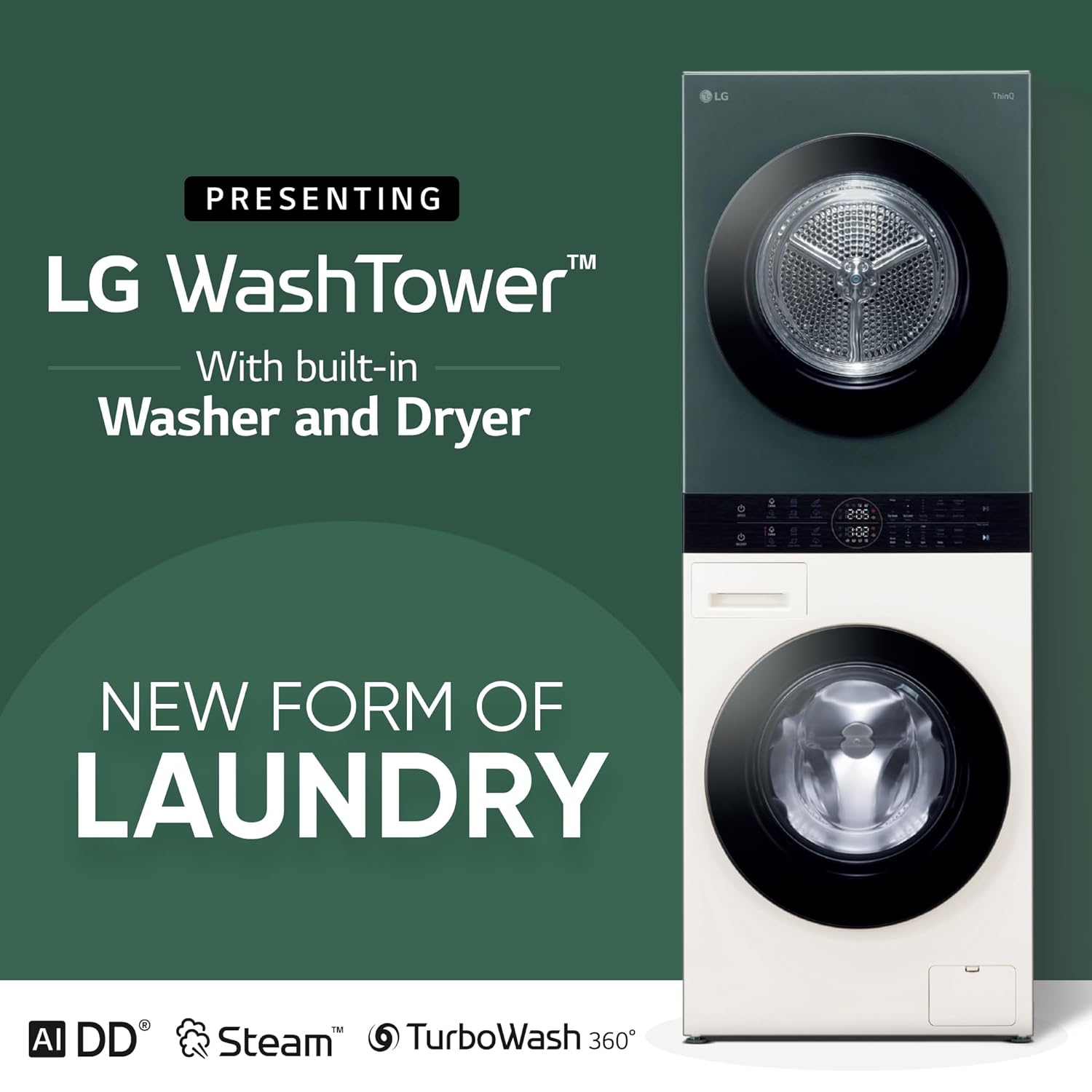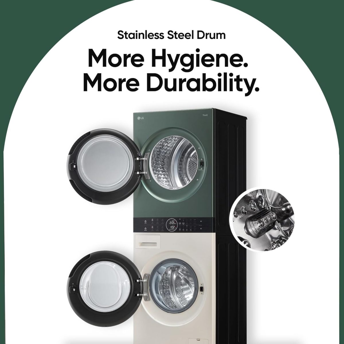 LG WashTower 13 Kg /10 Kg with AI Direct Drive & DUAL Inverter Heat Pump, Fully Automatic Front Load Washing Machine and Dryer (FWT1310BG) with Wi Fi & Central Control Panel Natural Beige & Green