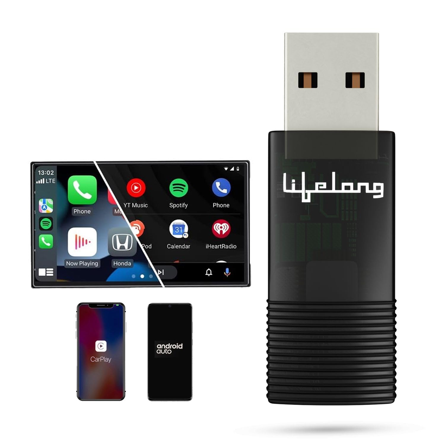 Lifelong 2-in-1 Wireless Android Auto & Wireless CarPlay Adapter for Car | for Android & iPhone/iOS | Converts Wired to Wireless | USB C/A | No App Needed | Stick Cast – Bluetooth & Wi-Fi (LLECA30)