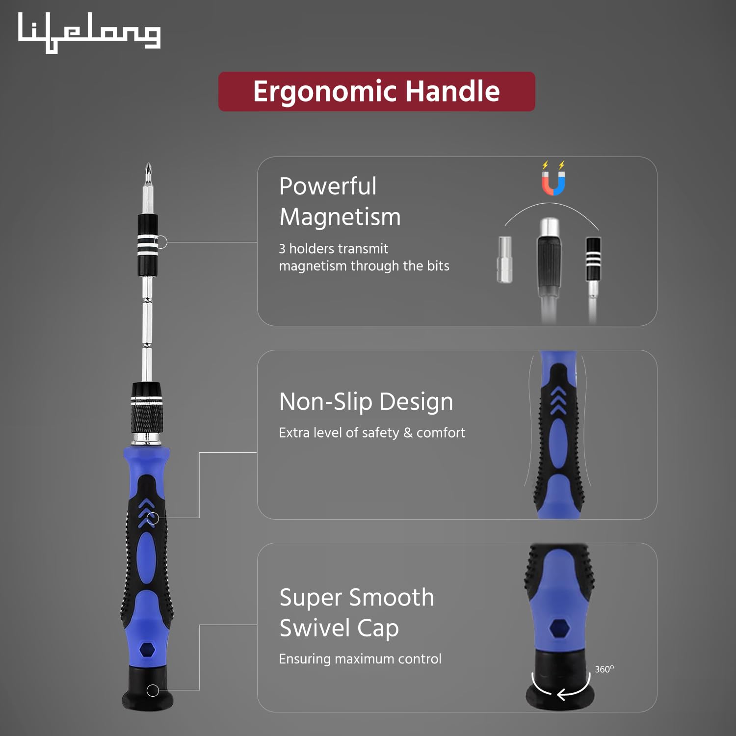 Lifelong 62 in 1 Magnetic Precision Screwdriver Set, Tool Kit for Home | Multipurpose – Furniture & Electronic Repair | Extendable & Flexible Shaft for Hard-to-Reach Places | Laptops, Phones (LLETK09)