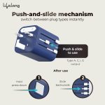 Intuitive, user-friendly design featuring effortless push-and-slide operation that enables rapid, convenient switching between different plug types with minimal effort required. Simply push the desired configuration and slide to activate, ensuring quick adaptation to any country’s electrical standards without complex mechanisms or tools.