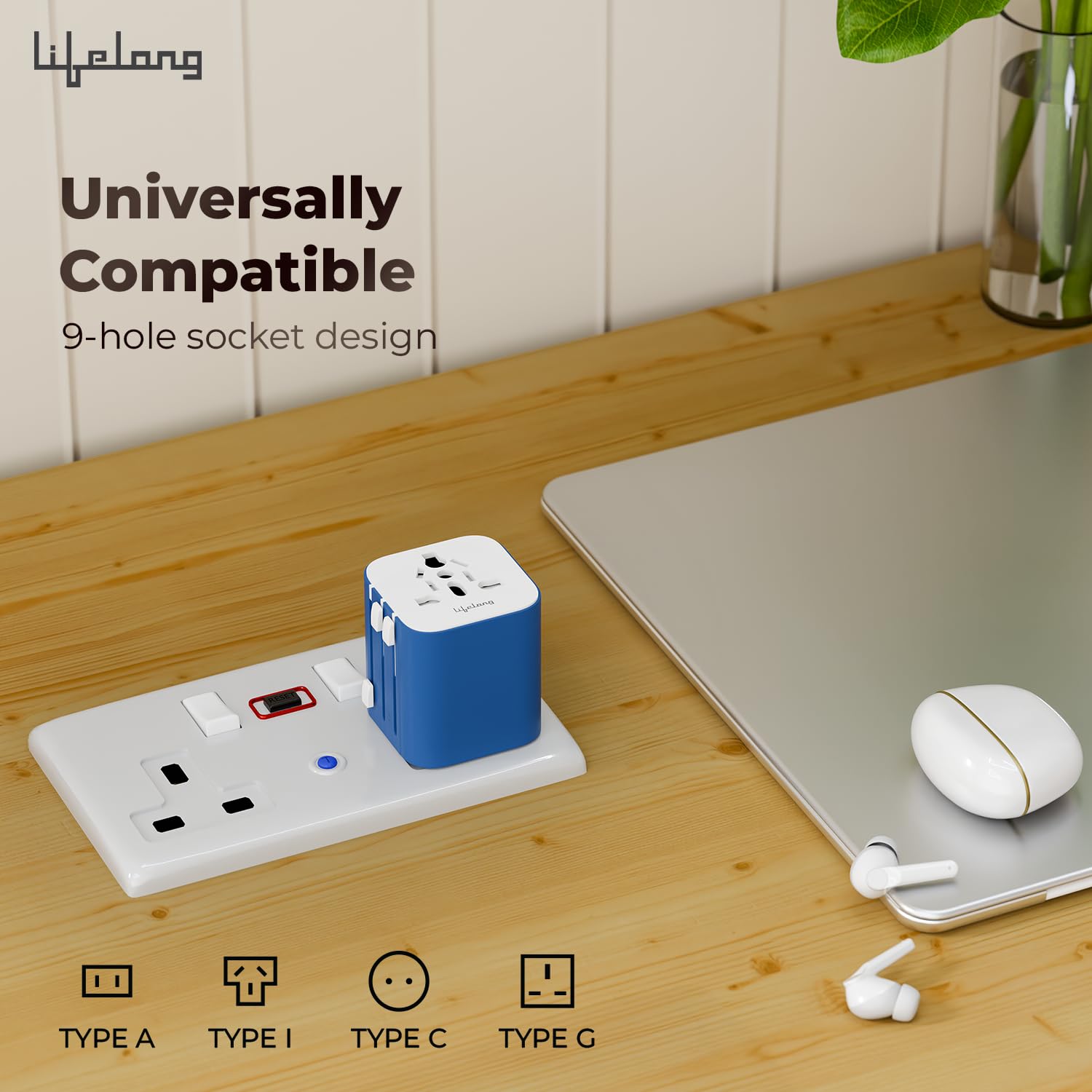 🌐Global Connectivity – The Lifelong Travel Adapter features a Universal 9-hole socket that accommodates numerous plug types, ensuring seamless connection for diverse electronic devices worldwide.