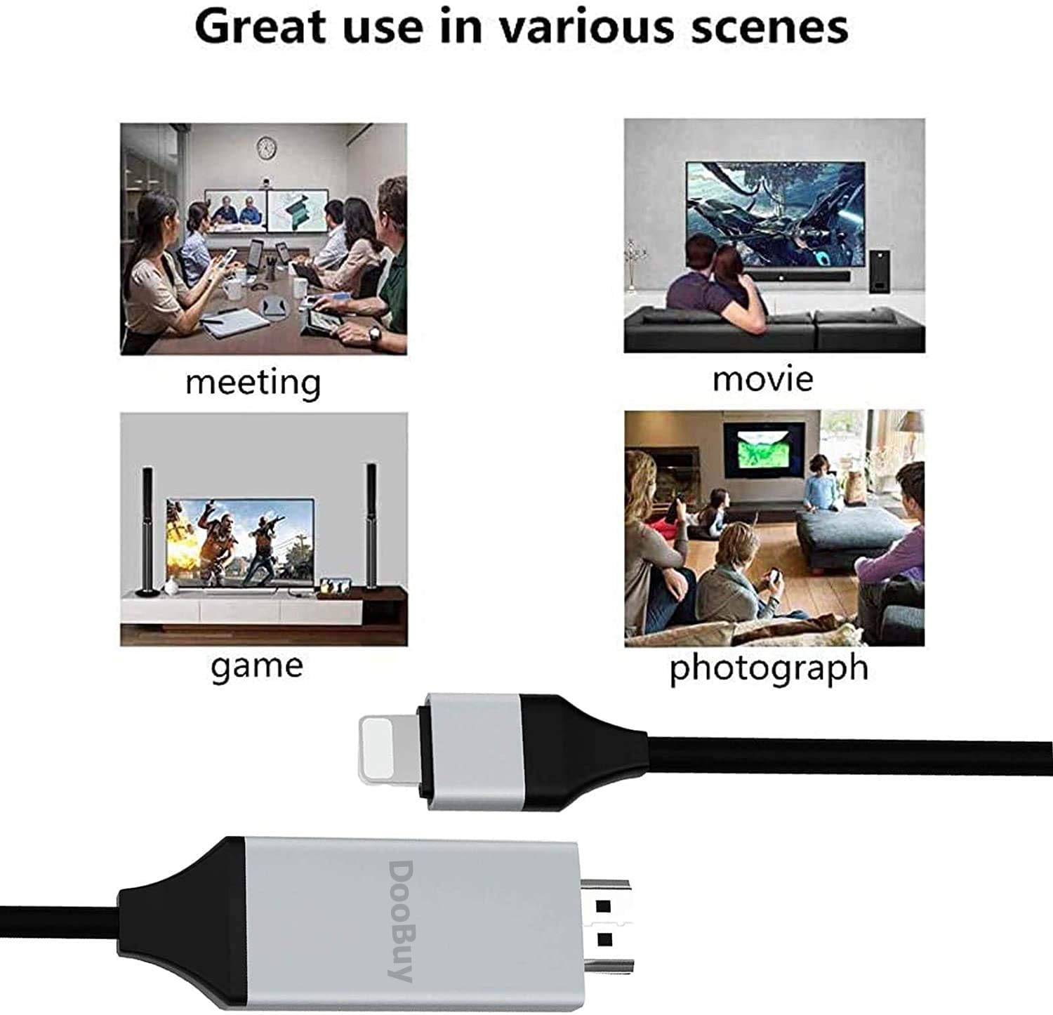 1.With it, you can easily connect your Phone/Pad to a HDTV, monitor or projector with HDMI input.
