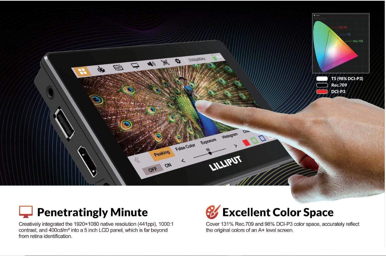 Lilliput T5 5″ 4K Monitor | Touch Screen IPS Full HD 1920×1200 4K HDMI 60Hz On-Camera Video Field Monitor for BMPCC DSLR Camera | Black