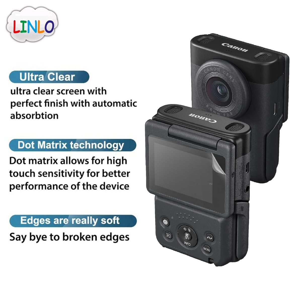 LINLO Screen Protector for Canon PowerShot V10 Vlog Camera Camera with Edge to Edge Coverage and Easy Installation Kit, Pack of 1, Transparent