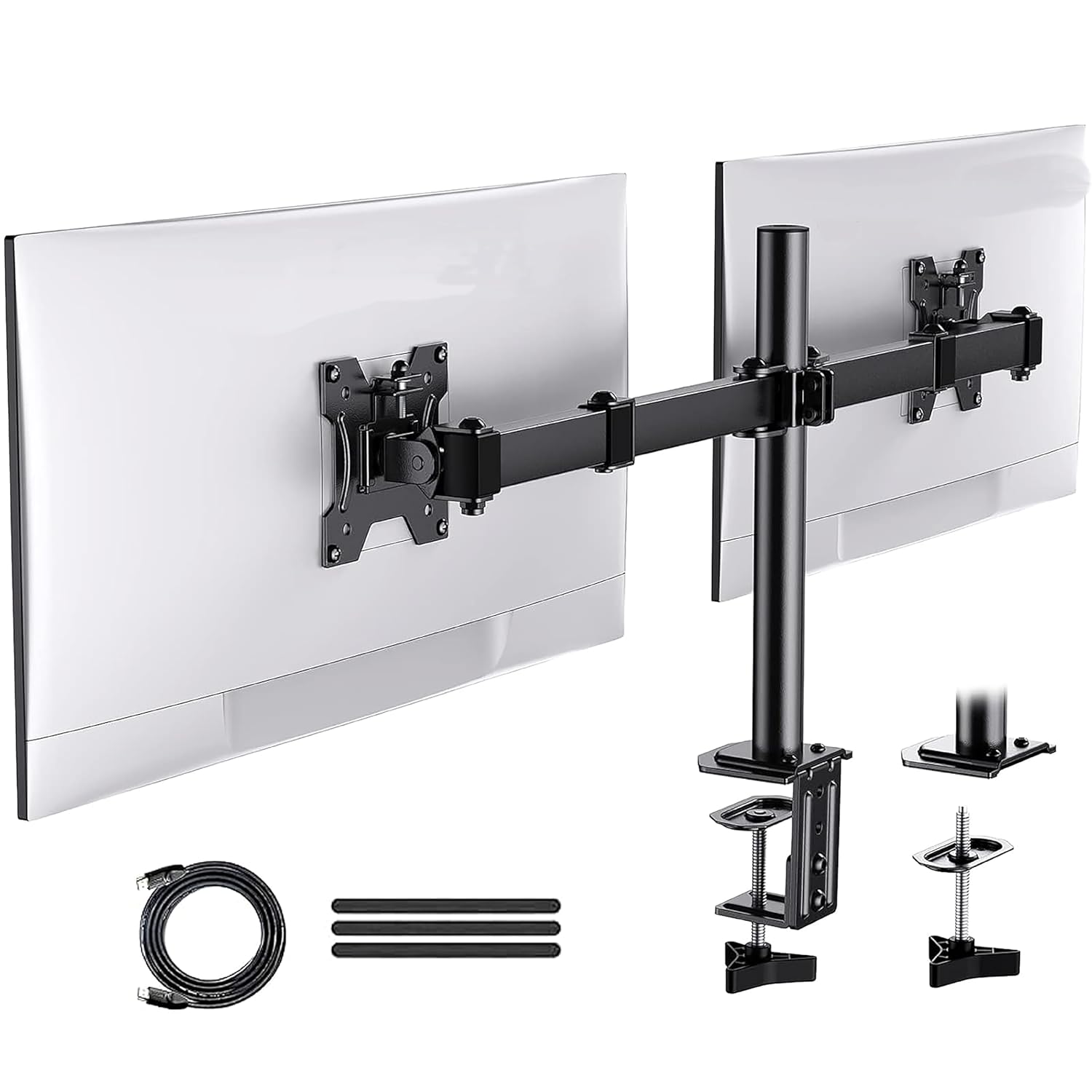 Lions Head Dual Monitor Desk Mount, Heavy Duty Fully Adjustable Steel Stand, Holds 2 Computer Screens up to 32 inch with HDMI 3 welgo Strap Stand Weight 3 kg Self Installation