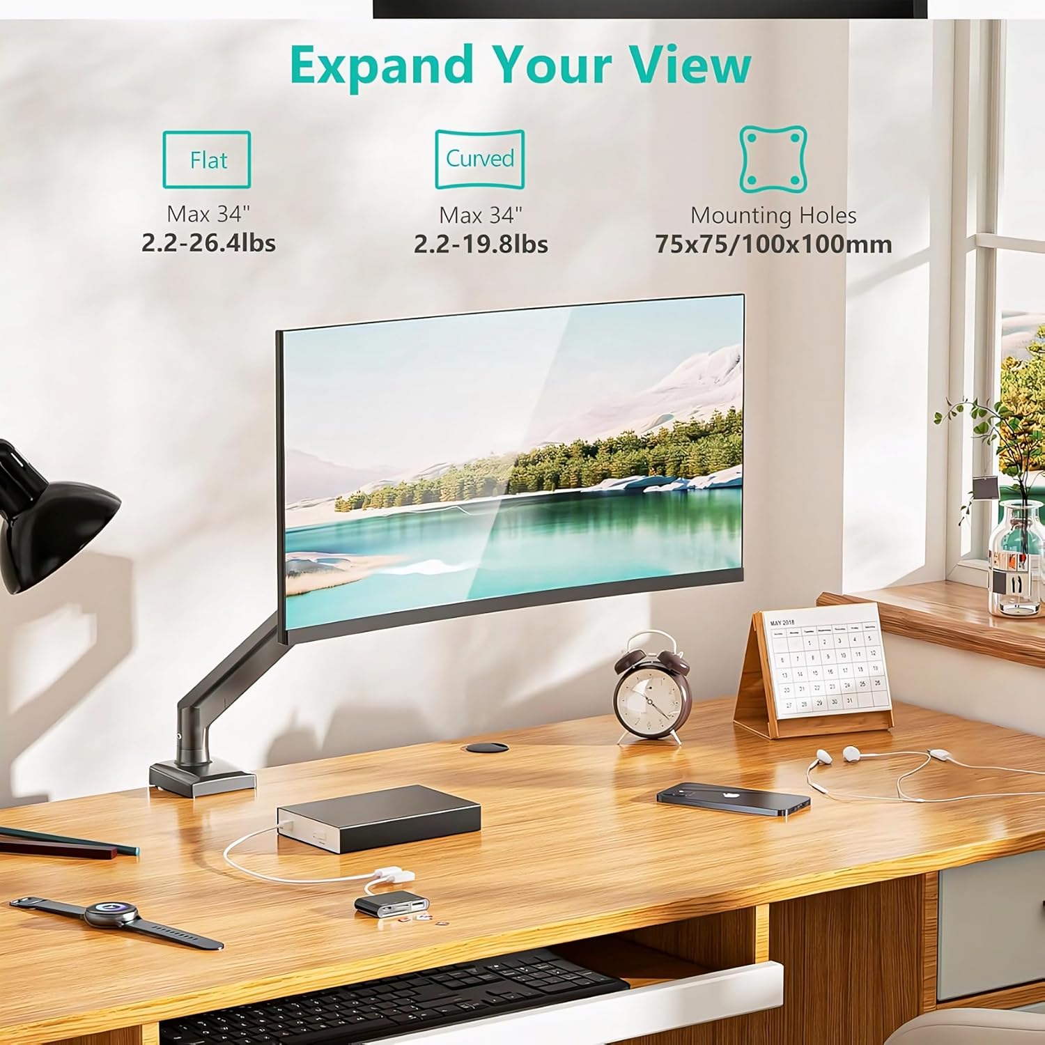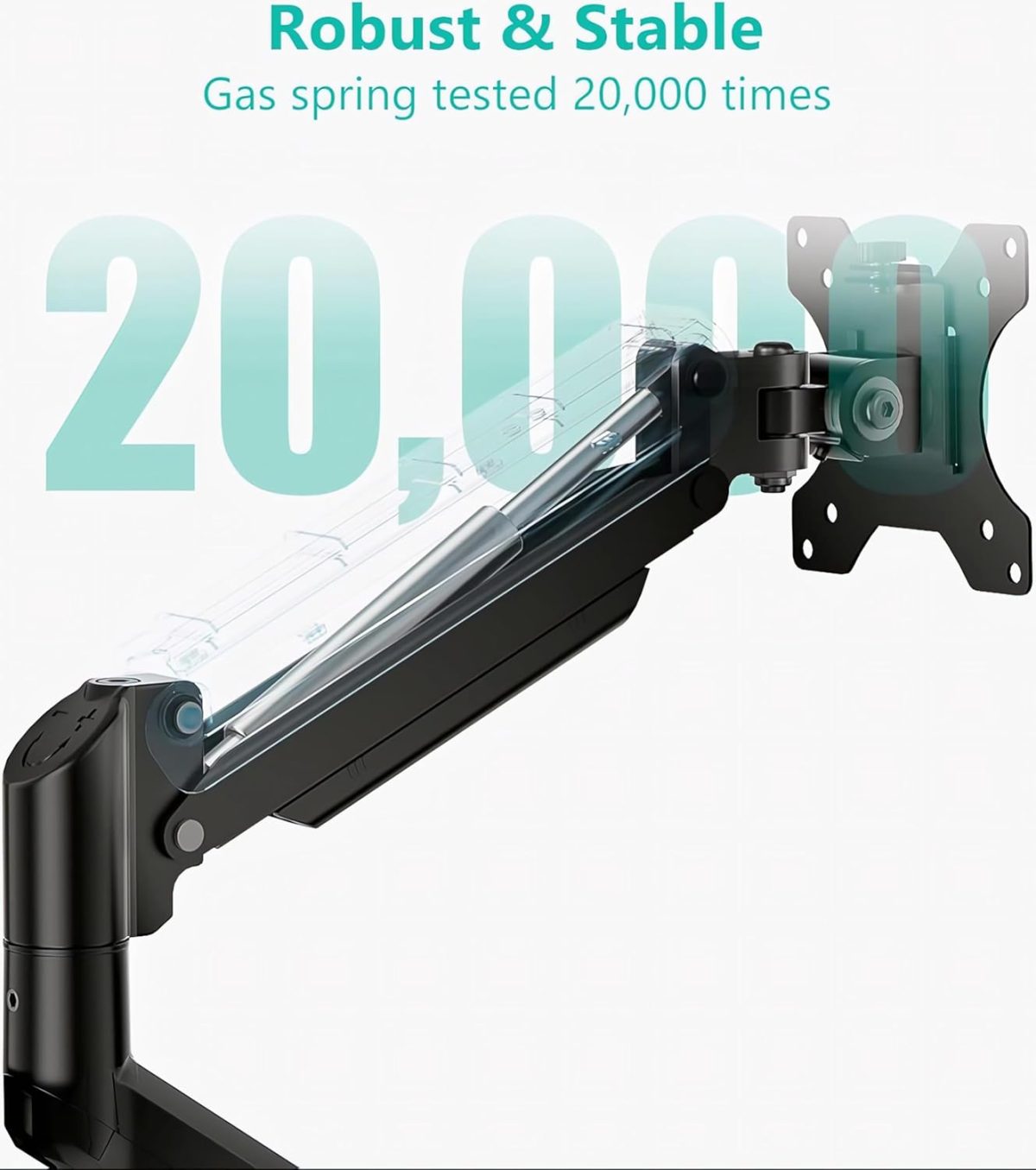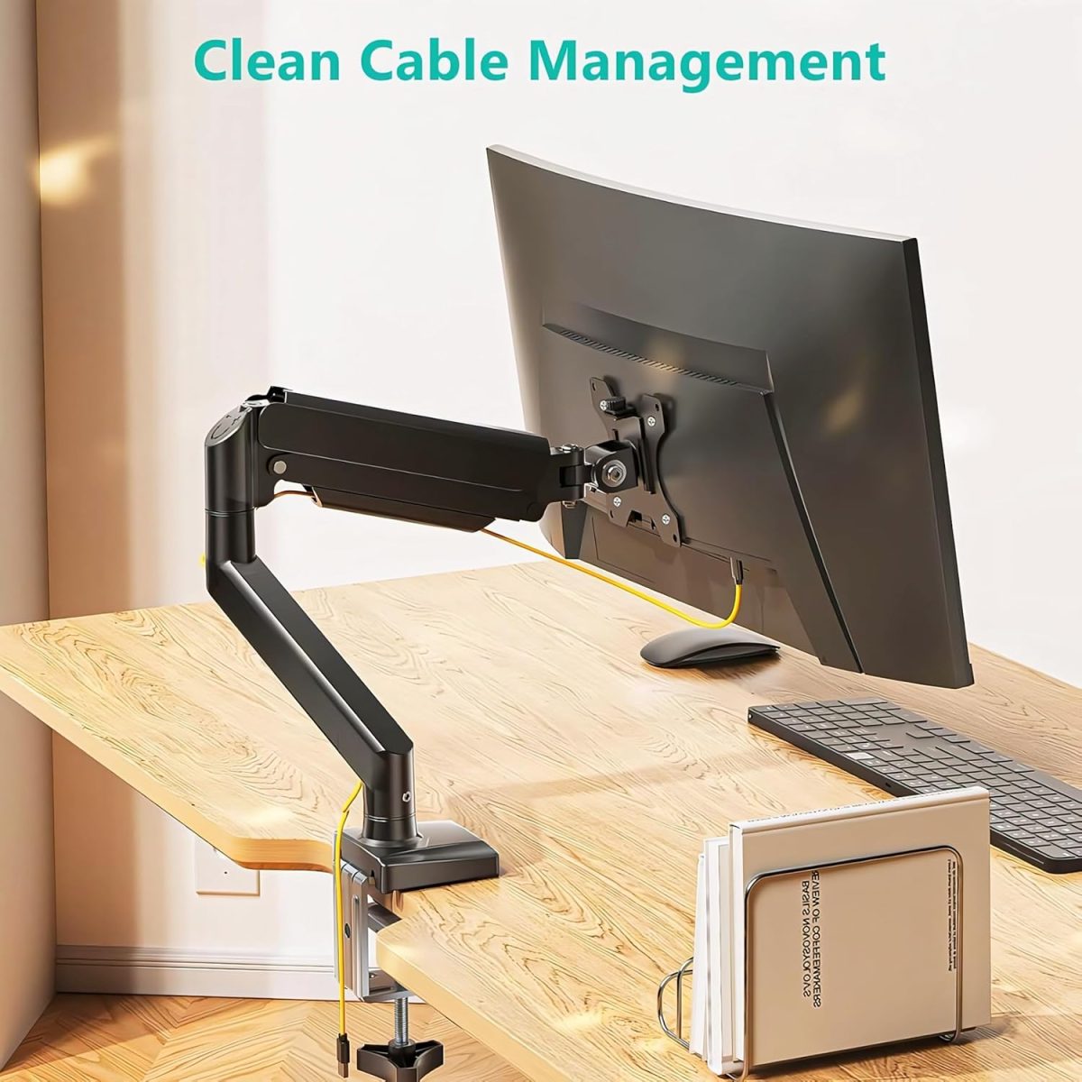 Increase Comfort In Work – Raise the screen to eye level while sitting at desk, reducing the strain on your neck, back and shoulder and keeping you healthy and productive. Install In 10 Minutes – The 1-piece design simplifies the installation; All necessary hard wares included; The setup can be complete in 10 minutes. Customize Your Screen Angle – This full motion monitor arm allows you to freely set your monitors to optimal view angle to meet your demands; Landscape to portrait is just a piece of cake! Stability – The solid construction and stable clamp/grommet base provide stable and secure holding for your monitors. Compatibility – Widely fit 17″ to 27″ flat / curved monitors with VESA pattern 75×75 and 100×100 from various brands; Hold 6.5kg Say goodbye to neck, shoulder, back pain with LIONS HEAD gas spring monitor mount. Built in premium gas spring, the full motion articulating arm provides smooth and durable height adjustments, making your monitor🖥 stay at any height. Easy to find an optimal screen height for you while sitting at your desk, relieving strain on the neck and back. The solid construction and sturdy base make it hold your monitor securely and free up much space on your desktop.