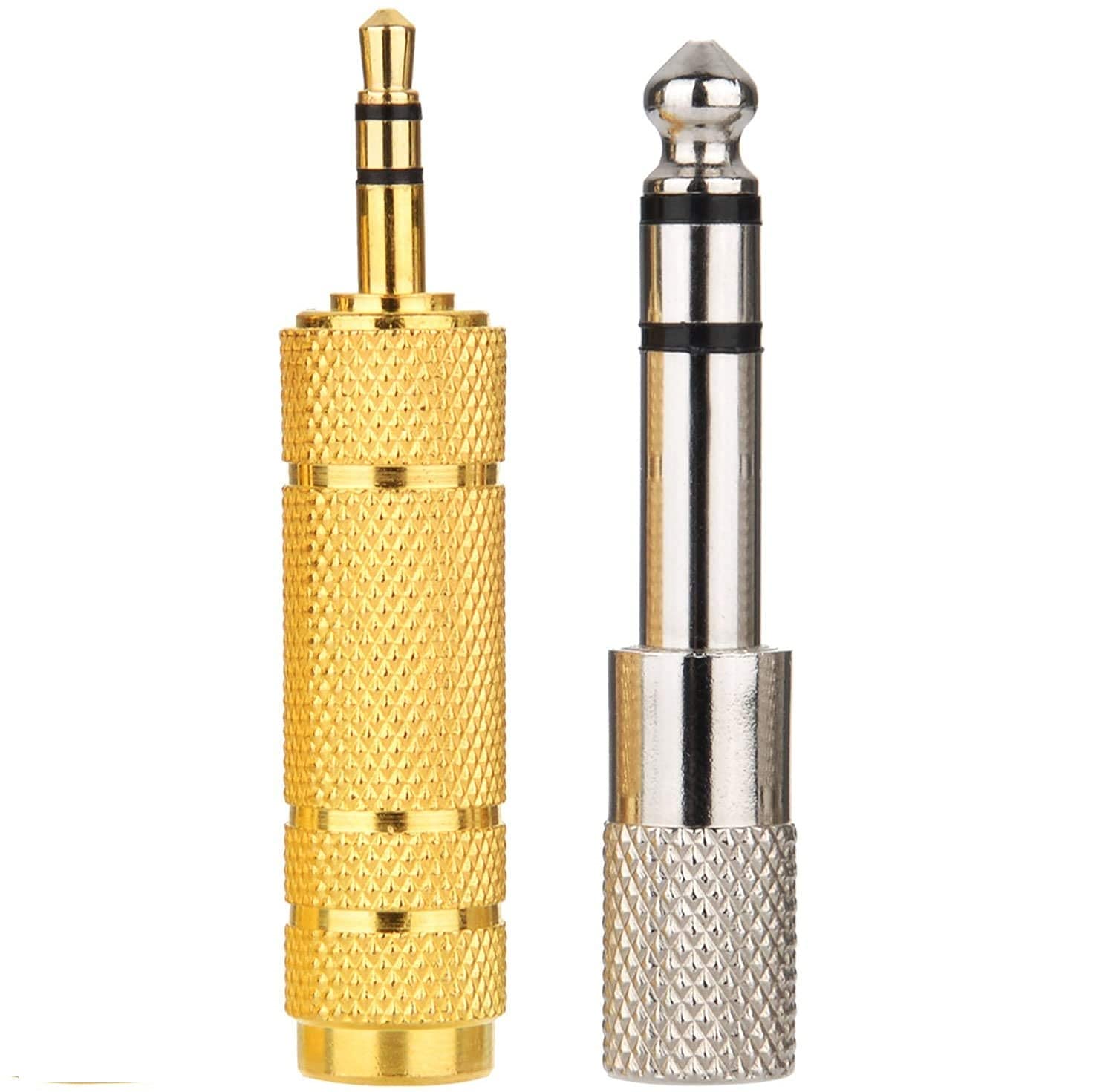 Audio jack adapter kit includes a 1/8 to 1/4 adapter and 1/4 to 1/8 headphone adapter, ideal for converting audio jacks for headphone use; Connect standard headphones to pro audio equipment like a A/V receiver or stereo using the 6.35mm to 3.5 adapter.