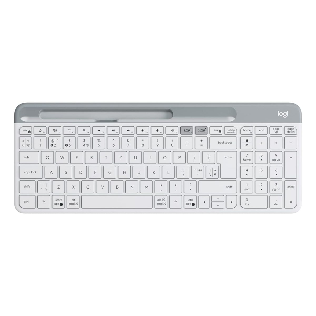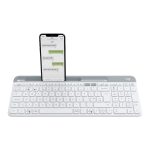 Logitech K580 Slim Multi-Device Wireless Keyboard Bluetooth/Receiver, Compact, Easy Switch, 24 Month Battery, Win/Mac, Desktop, Tablet, Smartphone, Laptop Compatible – White