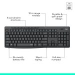 Innovative SilentTouch technology for same typing and clicking feel with 90% less noise (1). Keyboard with 8 convenient shortcuts and full numpad for efficient data entry and easier navigation. Gives you one-touch access to play/pause, volume, mute, and the Internet. Contoured and portable shape with smooth, precise clicking and pointing on most surfaces and SilentTouch technology for quiet clicks. Connect in 3 seconds (2) with a tiny receiver that delivers a strong, reliable 2.4 GHz wireless connection and 10 m range for a clean, clutter-free desk area. Compatible with Windows or Chrome OS and easily connects for plug-and-play simplicity. Spill-proof design (3), durable keys, and sturdy tilt legs with adjustable height. A 36-month keyboard and 18-month mouse battery life—plus on/off switches—means you can go for months without the hassle of changing batteries (4). Plastic parts in MK295 Graphite include certified post-consumer recycled plastic: 49% for the mouse and 71% for the keyboard.