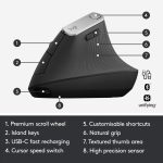 MX Vertical features a 4000 DPI high-precision sensor, resulting in 4x less hand movement (1) and reducing fatigue. The cursor speed switch allows you to instantly adjust DPI for faster or more precise cursor movement.