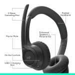 Logitech Zone 300 Wireless Bluetooth Over Ear Headset with Noise-Cancelling Microphone, Compatible with Windows, Mac, Chrome, Linux, iOS,iPados, Android – Black