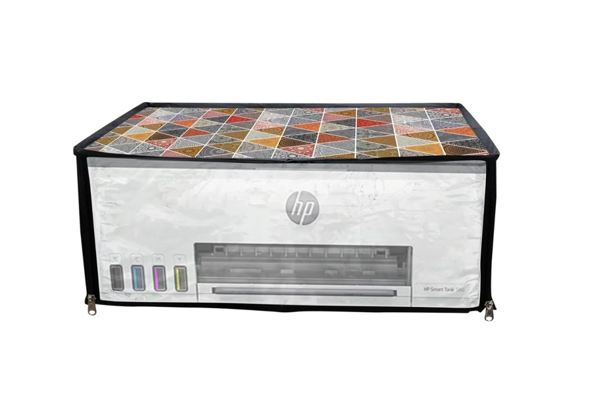 Material : Non woven Printed Fabric suitable for Epson HP Smart Tank 580 All-in-one WiFi Colour Printer Protects your printer from dust / rats and other miscellaneous harm zipper for opening & closing cover Full protection with closed cover