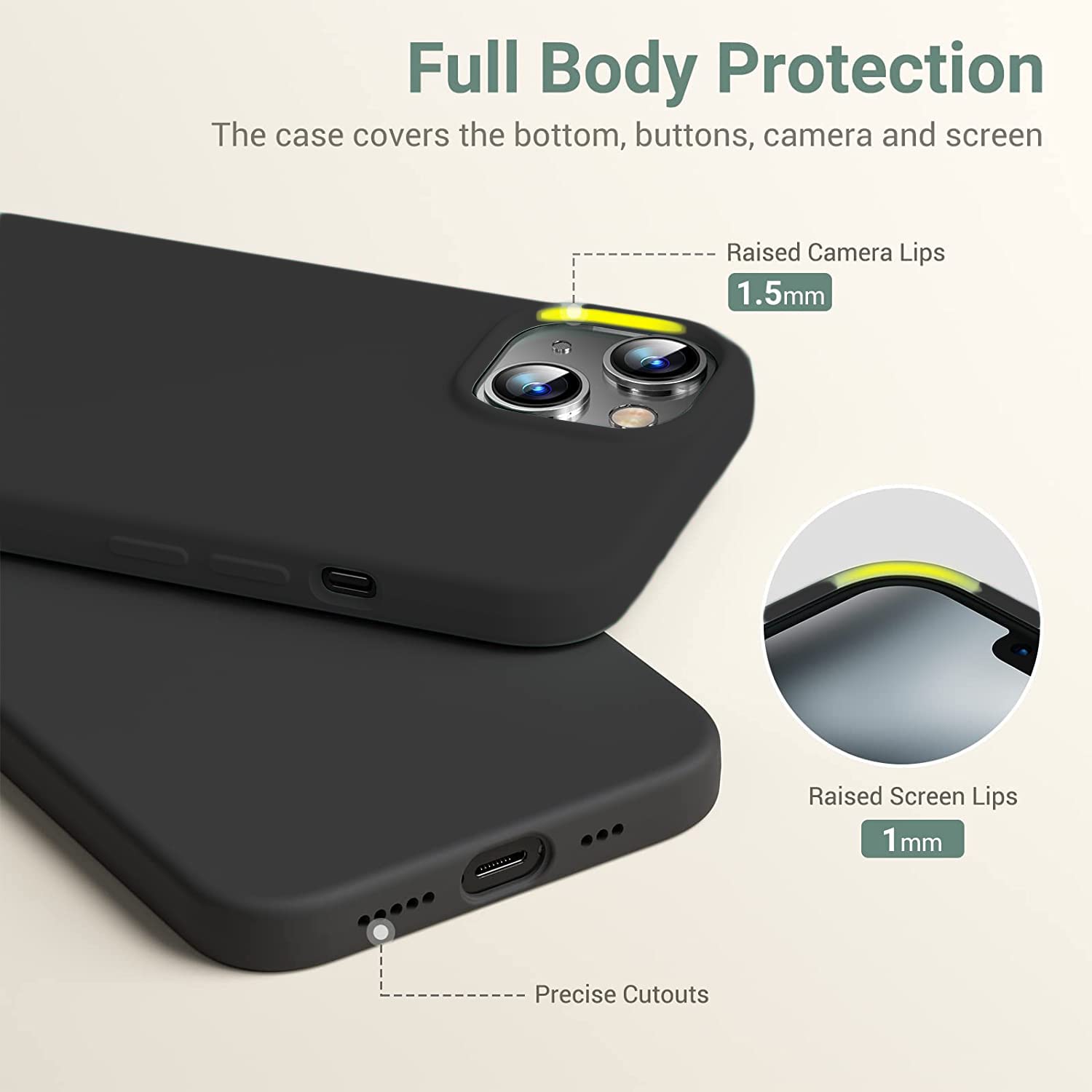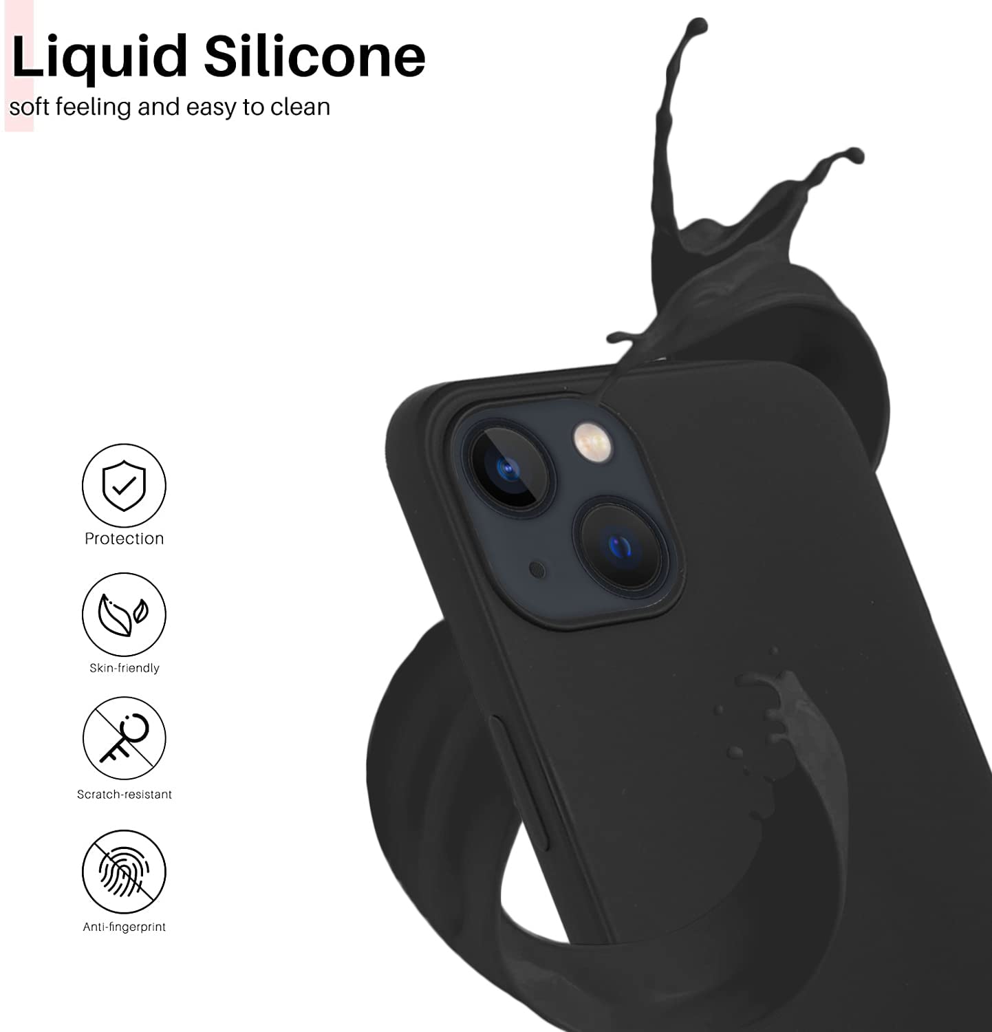 LOXXO® Compatible with iPhone 13 Case, Liquid Silicone Case, Full Body Protective Cover, Shockproof, Slim Phone Case, Anti-Scratch Soft Microfiber Lining,(6.1 inch – Black)
