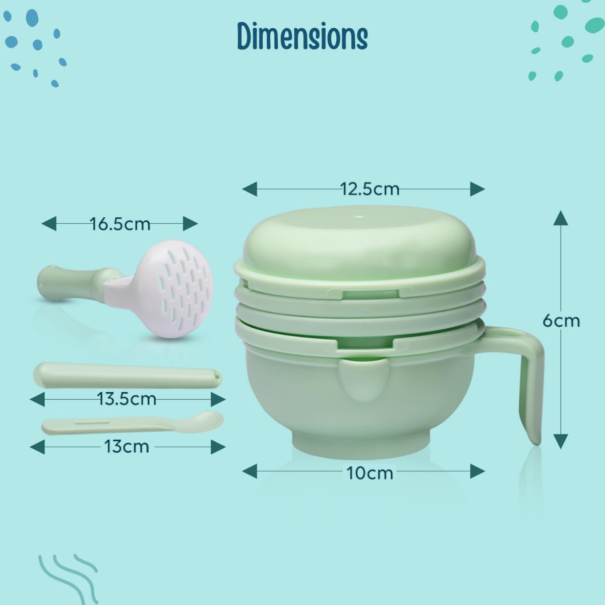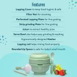 LuvLap 9 in 1 Baby Food Masher Mill, Food Grinder Cum Processor, with Multifunction Textured Mashing & Filtering Plates, with Serving Bowl (Light Green)