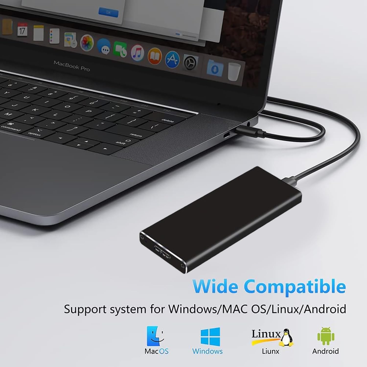 This enclosure works seamlessly with Windows, Mac OS, and Linux platforms, ensuring broad compatibility. It supports various M.2 SATA SSD sizes, giving you flexibility regardless of your drive specifications.
